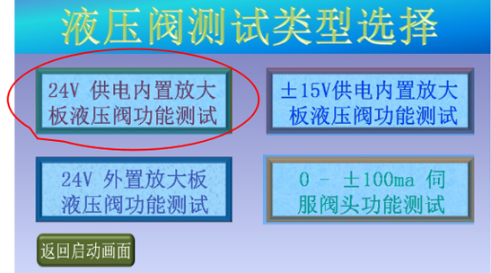 3、確認(rèn)現(xiàn)場人員和設(shè)備安全后,點擊“進(jìn)入測試”,進(jìn)入液壓閥測試類型選擇畫面;