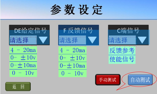 7、手動測試基本正常后,點擊屏幕左下方的返回鍵,返回參數(shù)設(shè)定畫面;