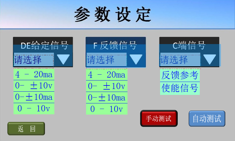 7、手動(dòng)測試基本正常后,點(diǎn)擊屏幕左下方的返回鍵,返回參數(shù)設(shè)定畫面;