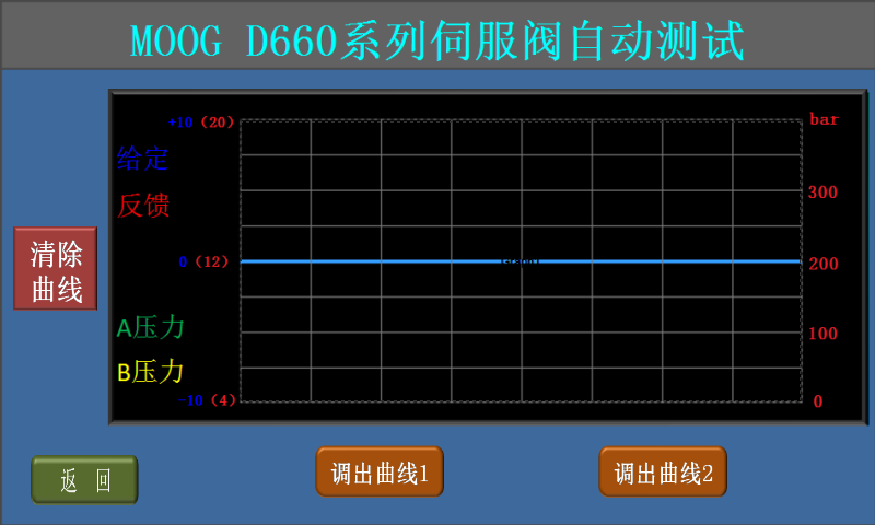 6、伺服閥正常時(shí)的表現(xiàn)為:a、給定電流0ma時(shí),反饋電流在12.00ma,伺服閥輸出的A、B腔壓力相同;b、用滑動(dòng)條可迅速換向,反饋電流改變且A、B腔壓力差較大;c、點(diǎn)擊增加按鈕,反饋電流逐漸增加且A、B腔壓力差逐漸增大;d、點(diǎn)擊減少按鈕,反饋電流逐漸減少且A、B腔壓力差逐漸減少,過0ma后伺服閥會(huì)換向;